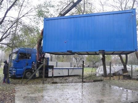 Bereits nach 5 Tagen konnten wir über einen Freund zwei Wohncontainer organisieren (á 6 x 2,5 m), ausgestattet mit einem Heizkörper, 2 Lichtbalken, 2 Fenster und einer Eingangstür, 2 Steckdosen, isolierten Wänden und einem PVC Fußboden – sofort beziehbar. Eine Trennwand zur Schaffung eines kleinen Futterkammerls konnte während der Aufbauarbeiten noch eingebaut werden. Die Firma organisierte unentgeltlich Transport und Aufbau und das Tierheim Team vor Ort ist gerade dabei, Strom und Wasser einzuleiten.